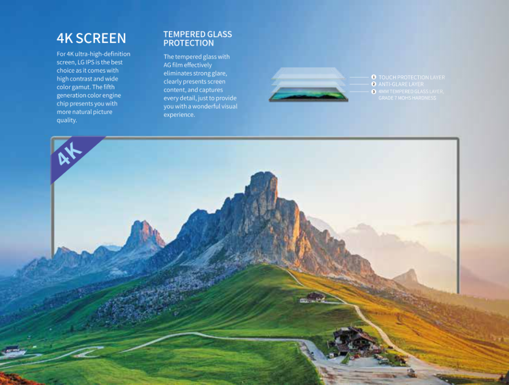 • Uses AG anti-glare tempered glass, with a Mohs hardness scale of 7, providing a better writing