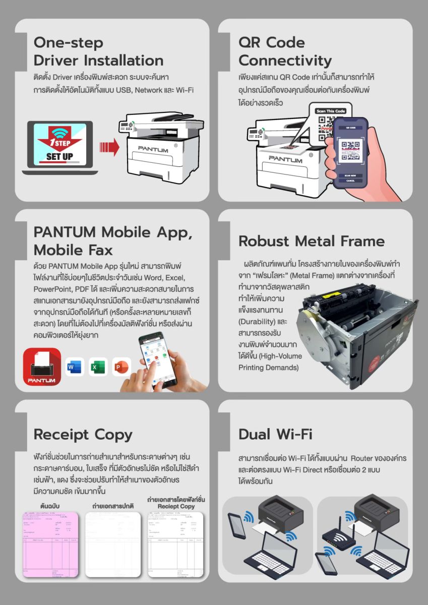 - รองรับแอพ Airprint/Mopria/Pantum
